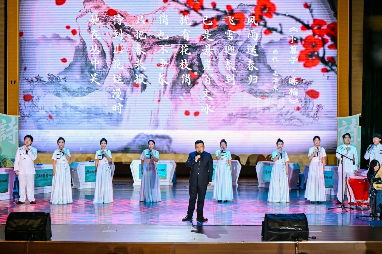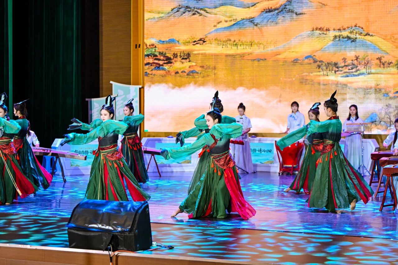 致辞结束后,两场特色表演为大会注入灵动气息:乐舞《盛世国乐》以弦音流淌诠释“盛世回响”,以衣袂飘飘展现“诗意飞扬”;《中华诗词吟诵里的贵州人文》则通过沉浸式吟诵,带领现场观众走进贵州的青山绿水,感受地域文化与古典诗词的深度融合,赢得满堂喝彩。
