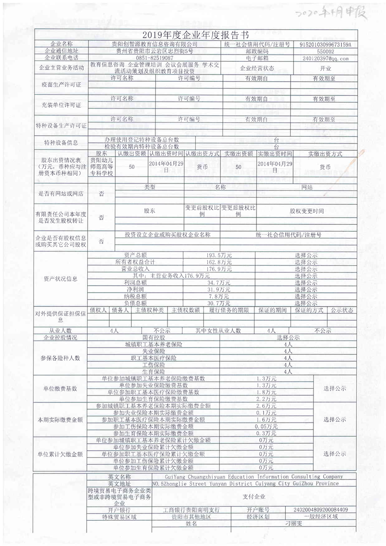 贵阳创智源教育信息咨询有限公司2019年度企业年度报告书