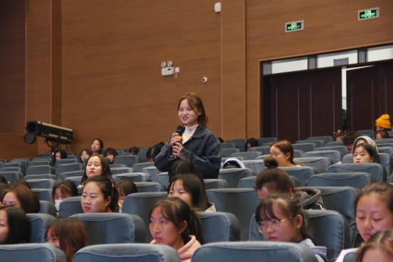 在与学生的互动环节中,面对学生提出的关于非遗、苗绣等问题,石丽平老师当场一一解答,并且还向学生们谈到“要做一个有梦想的人、一个追梦的人、一个圆梦的人。”