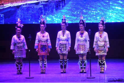 随后多彩贵州艺术团有限公司演员们演绎了《阿西里西》非遗情景秀选段节目——侗族大歌、盛装展示,向在场的观众展示了苗族、侗族、布依族、水族的民族特色盛装,并和在场的观众进行了互动。