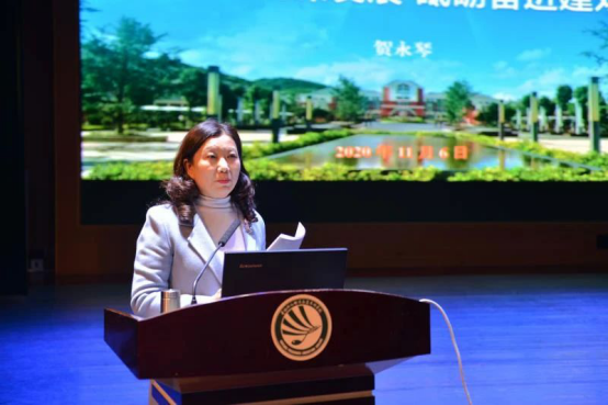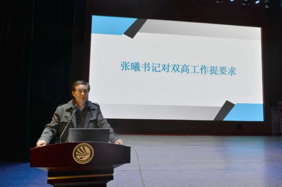 贺永琴通过“坚守初心担使命”“时代奋进谋发展”“服务民生绘双高”“特色高质建双高”四大板块,围绕“双高”项目的建设意义、建设目标与思路以及建设的任务举措、预期成效、保障措施进行了详细解读。她指出,希望全校教职员工提高对“双高”建设工作的认识,抓住此次学校跨越式发展的重要机遇,紧密配合,做到工作保障有力、责任落实到人,把“双高计划”建设作为学校干部培优、师资建设、学生发展工作的重要平台,全面提升学校整体发展水平,统筹推进“双高计划”建设项目申报各项工作的开展。