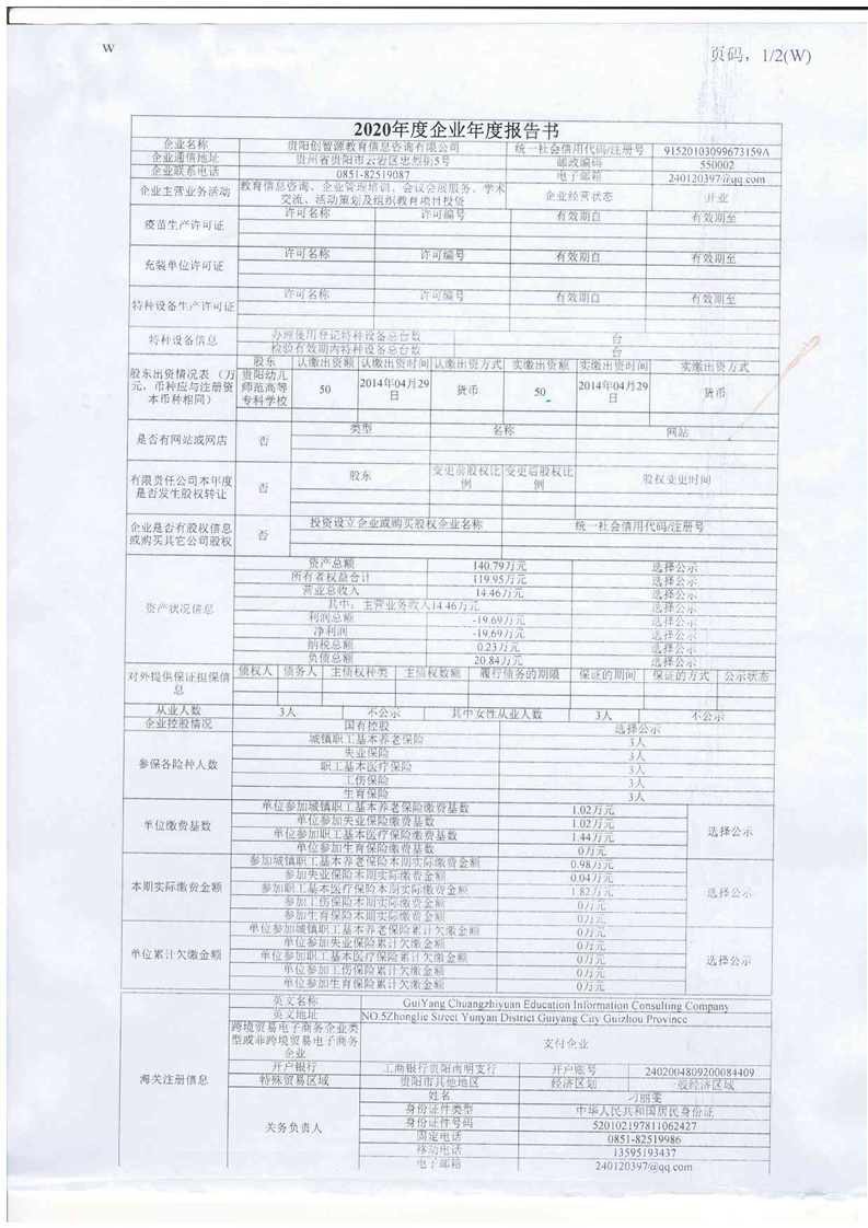 贵阳创智源教育信息咨询有限公司2020企业年度报告书