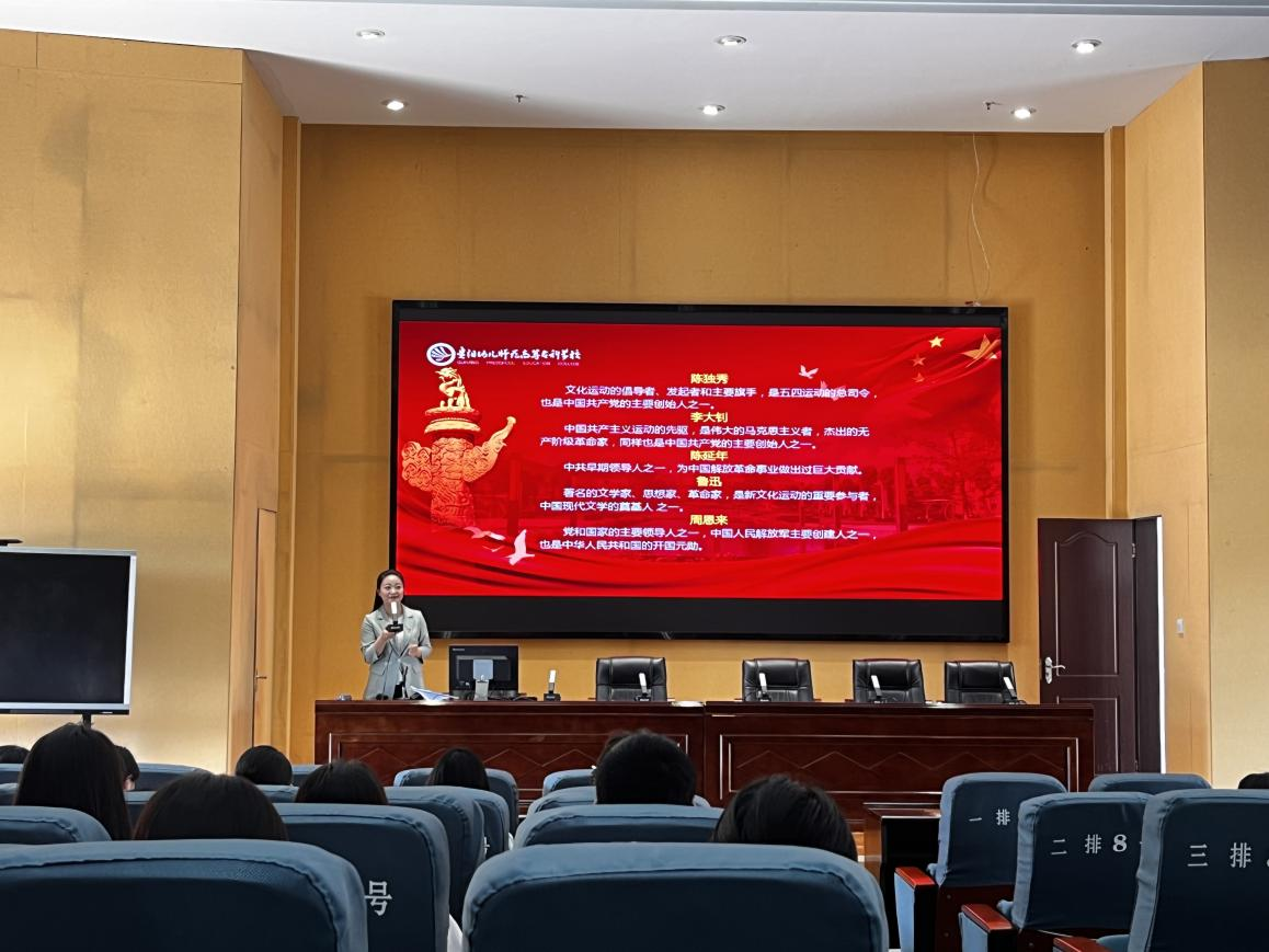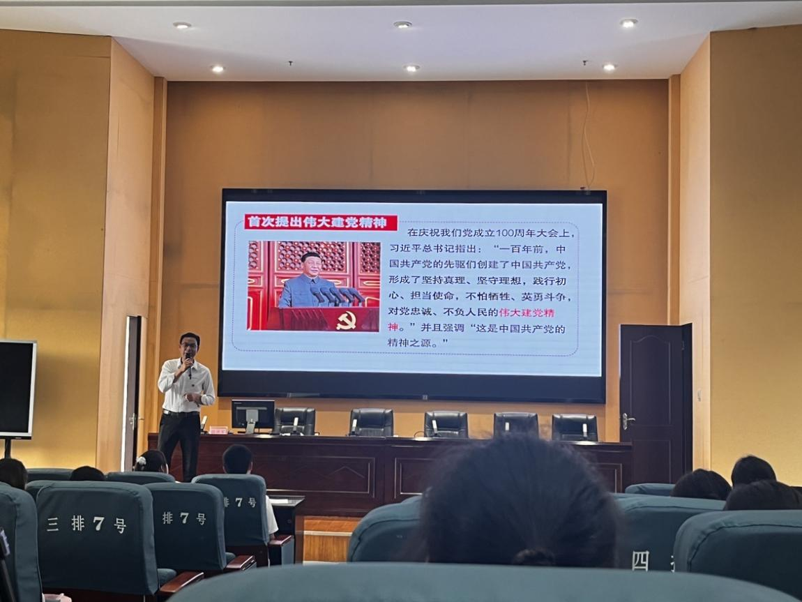 思想政治理论课教学部党支部书记、副部长骆洪军从伟大建党精神的生成基础、科学内涵、时代价值三个方面生动地阐述了《弘扬伟大建党精神》。
