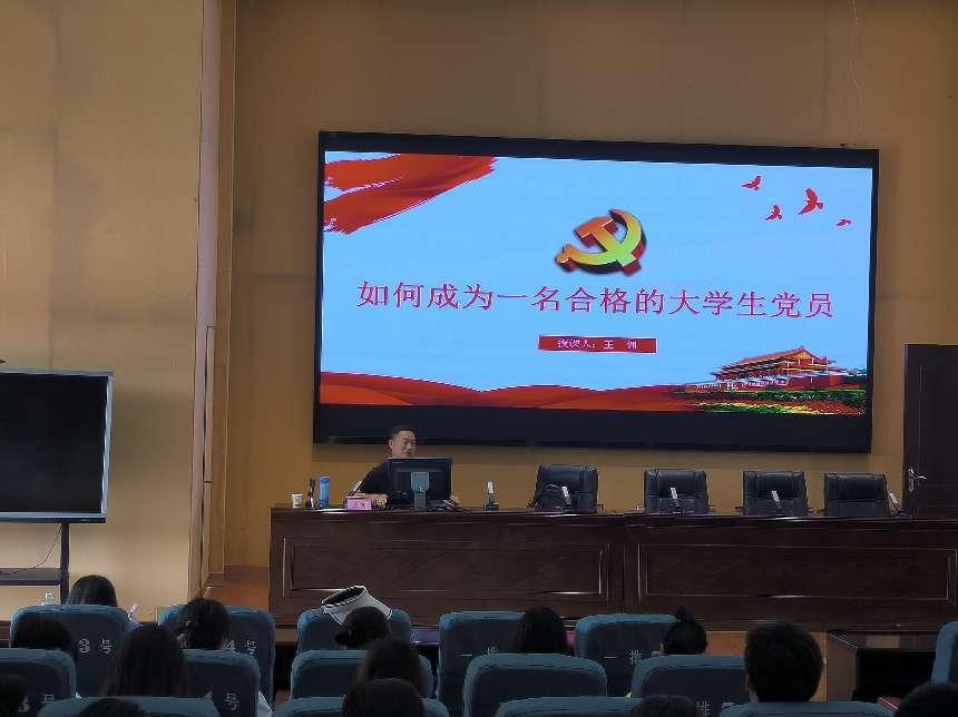 学前教育与特殊教育系教师党支部书记、教务科科长王佣从党员是什么、当代大学生与中国共产党、怎样成为一名合格的大学生党员三个方面给学员们讲授了《如何成为一名合格的大学生党员》。