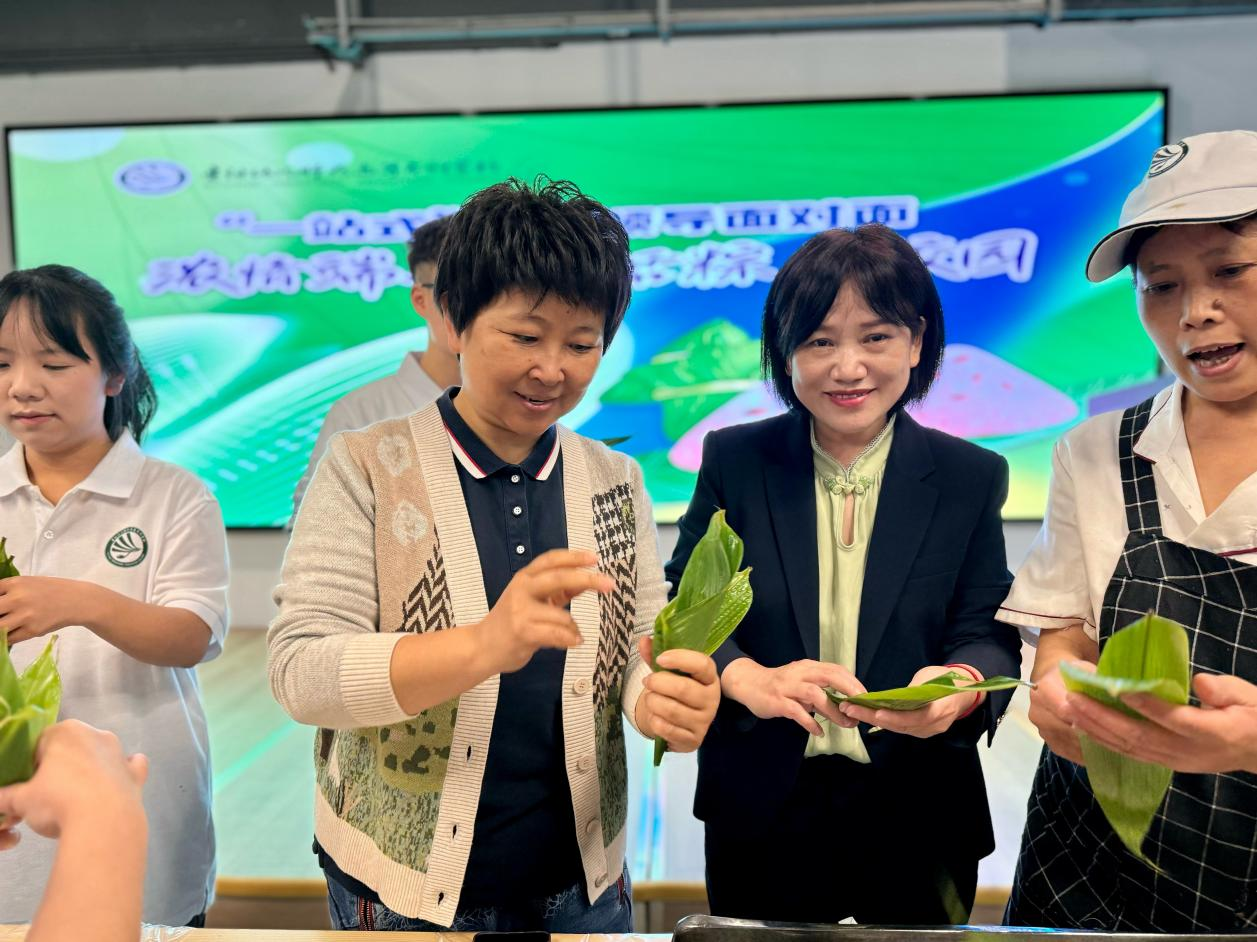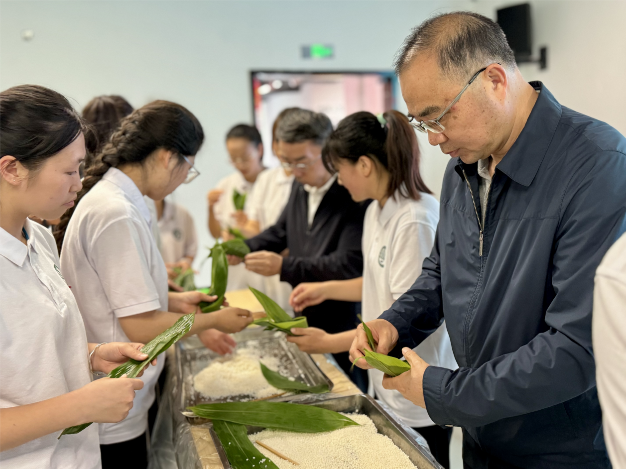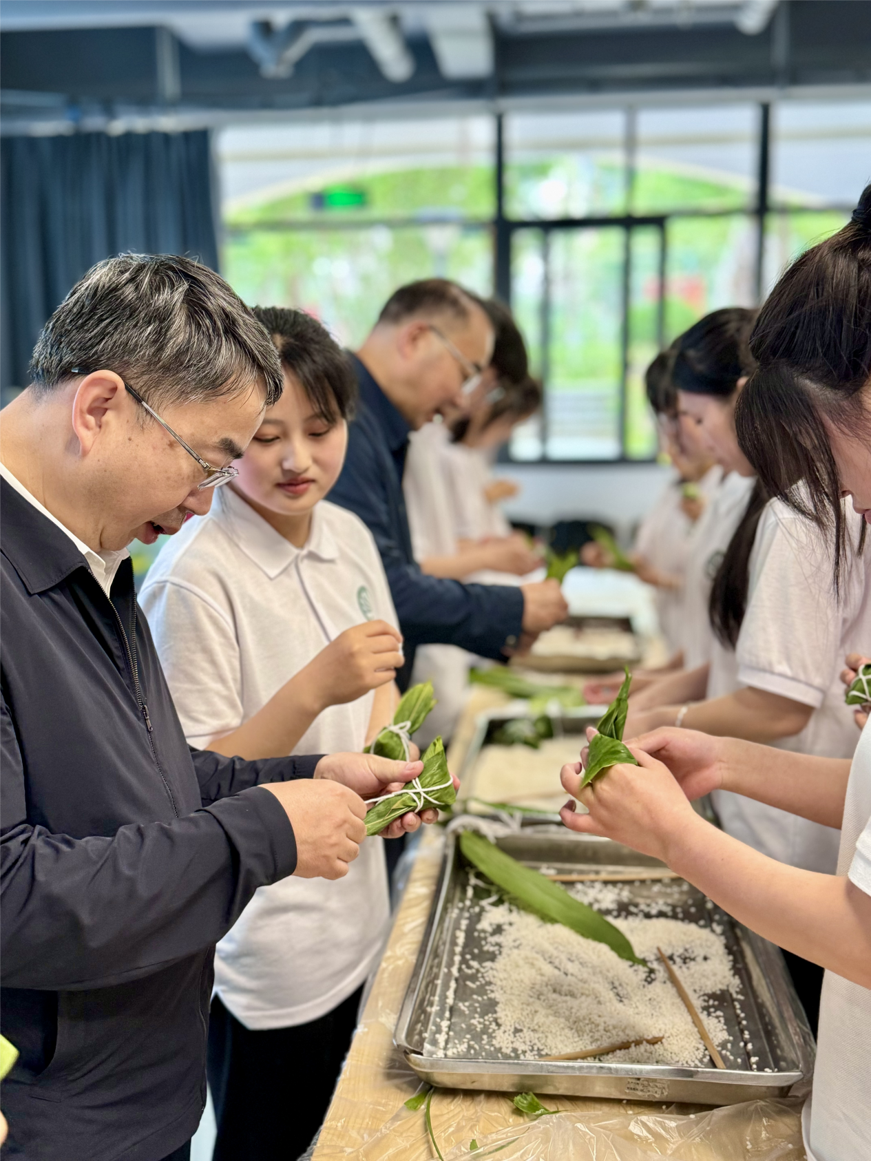 学校党委书记李华荣,校长翟理红,党委副书记廖光力,党委委员、副校长潘丽芬,党委委员、纪委书记陈尧年与学生们一同回顾了端午节的历史文化,共同参与了包粽子等传统习俗体验,深化了对端午文化的理解和感悟,同时加强了师生之间的情感交流。
