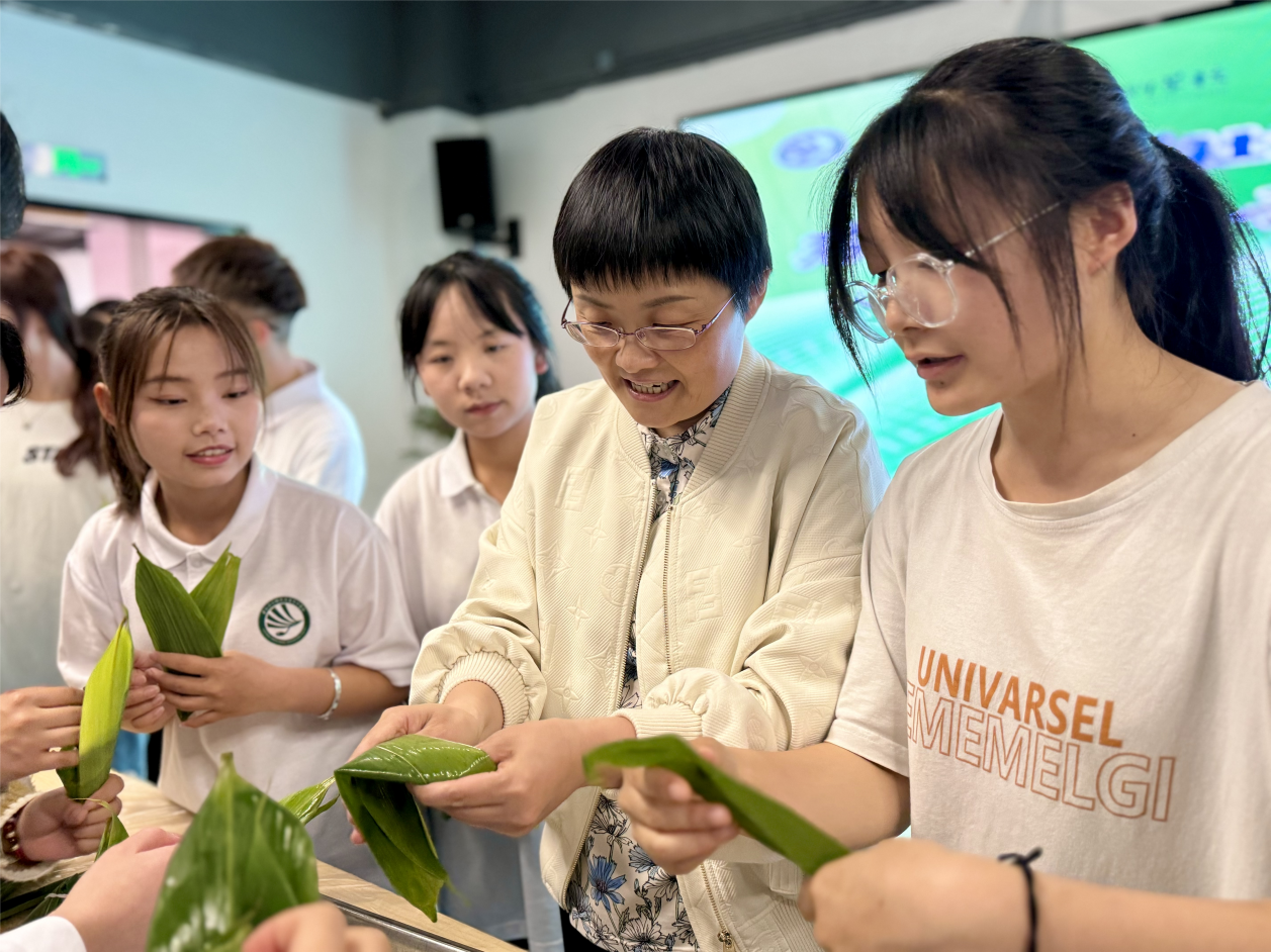 最富特色的环节莫过于包粽子,师生共同体验了选材、洗叶、包裹、捆绑等包粽子的完整过程,不仅让学生体验到了制作粽子的乐趣,也让校领导与学生在共同完成一件事情的过程中拉近了距离,搭建了沟通的桥梁。在交流谈话中,校领导与学生一起分享各自家乡的端午习俗和个人对这个传统节日的看法与感受。学生们也借此机会向校领导提出了自己在学习生活中遇到的问题与建议,领导们耐心聆听并给予了积极的回应,体现了学校对学生声音的重视和对传统文化教育的支持。