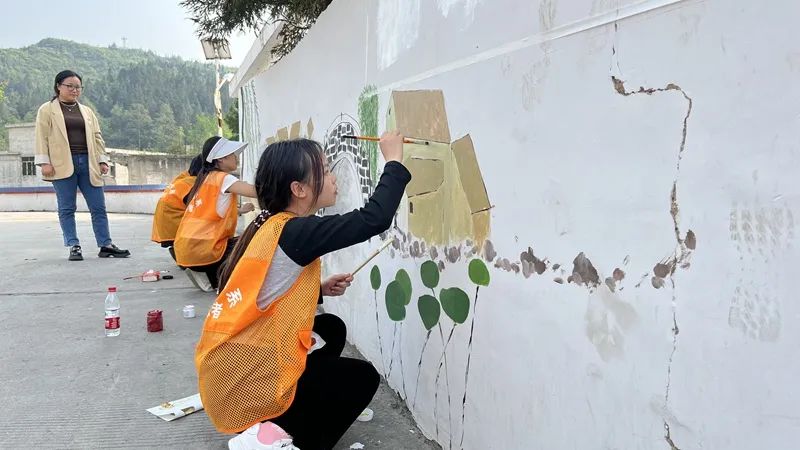 学校组织大学生志愿服务队伍到蒋家院村开展墙绘。