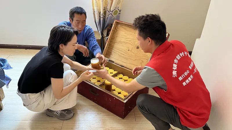 蒋家院村驻村干部为村民代卖蜂蜜。