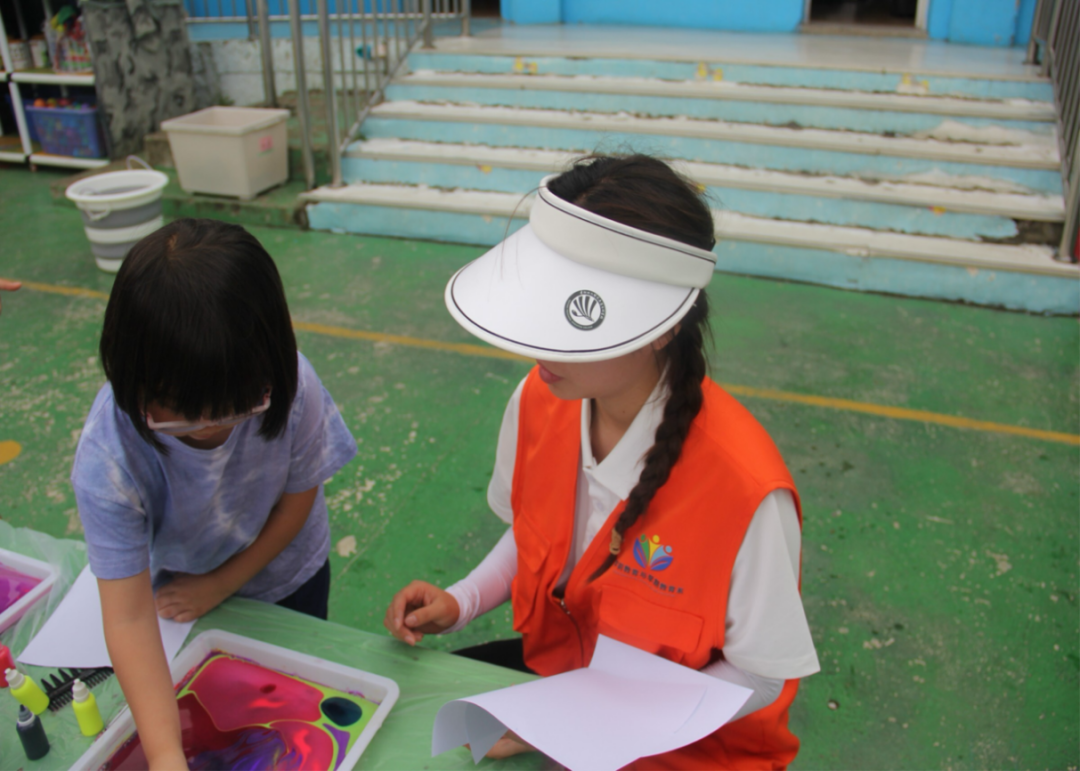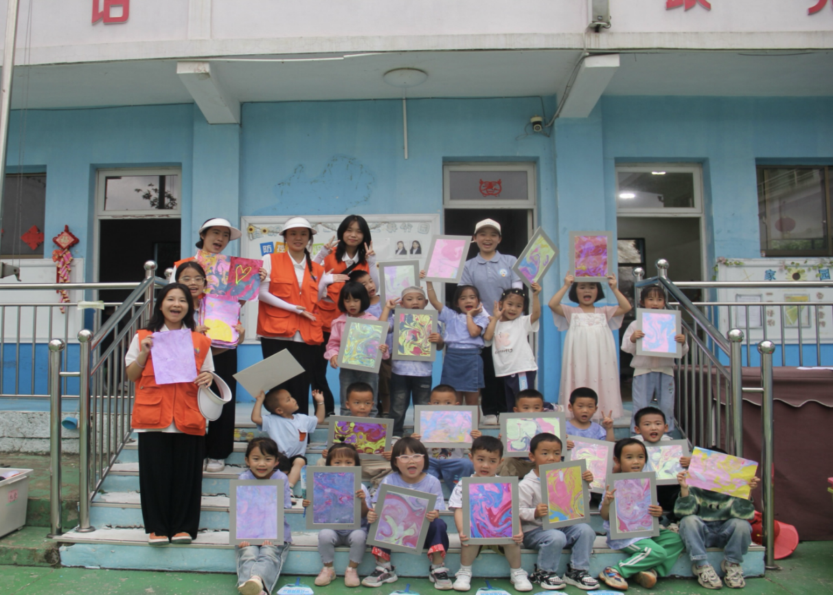 在红枫湖镇芦荻哨村幼儿园,学早系“三下乡”社会实践队开展了水拓画及徽章制作活动。活动过程中,小朋友们表现出极大的兴趣和热情。