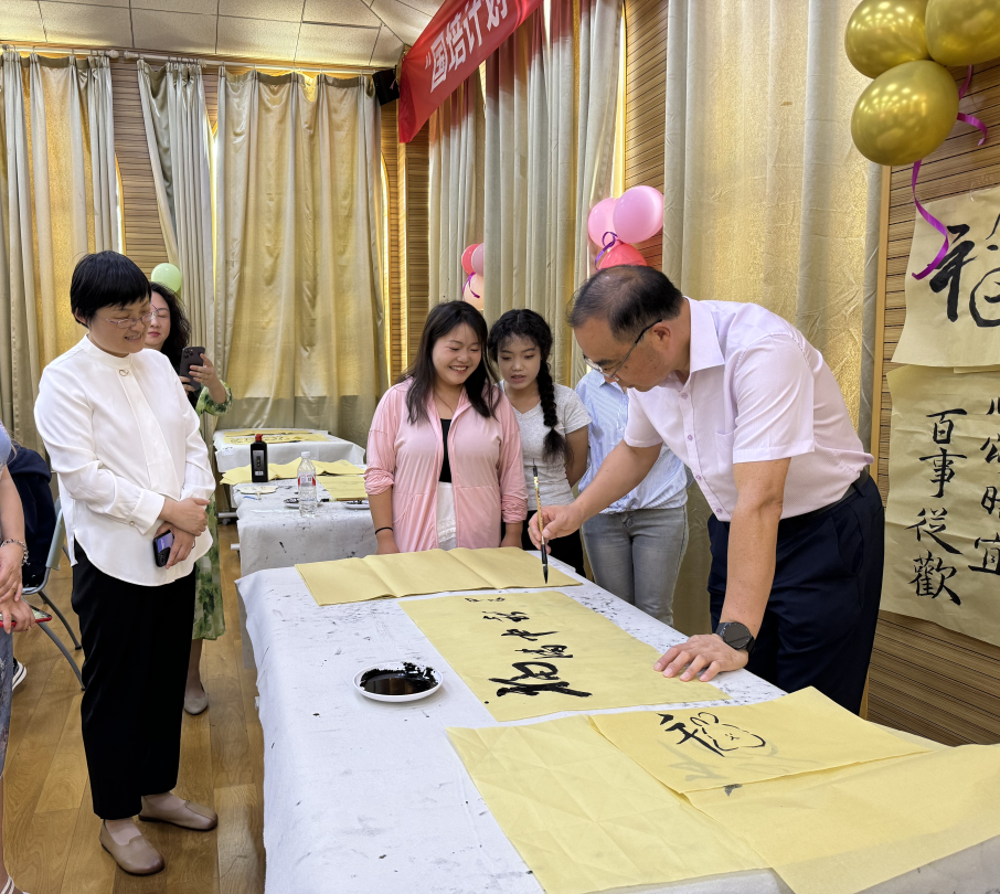 书写月圆环节中,校领导与师生们一同以笔墨寄情,创作出一幅蕴含中秋韵味的“福满中秋”的作品,并向师生们致以节日的祝福。