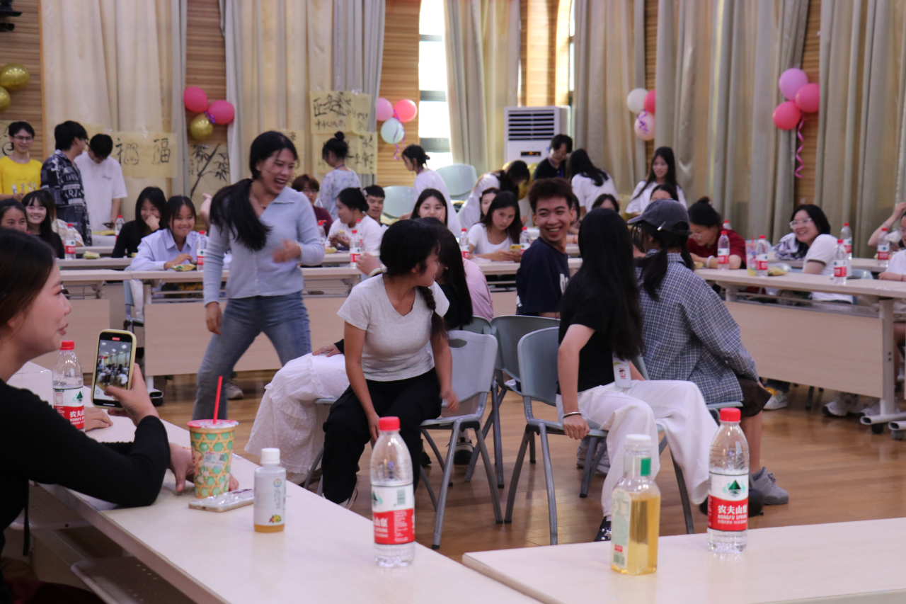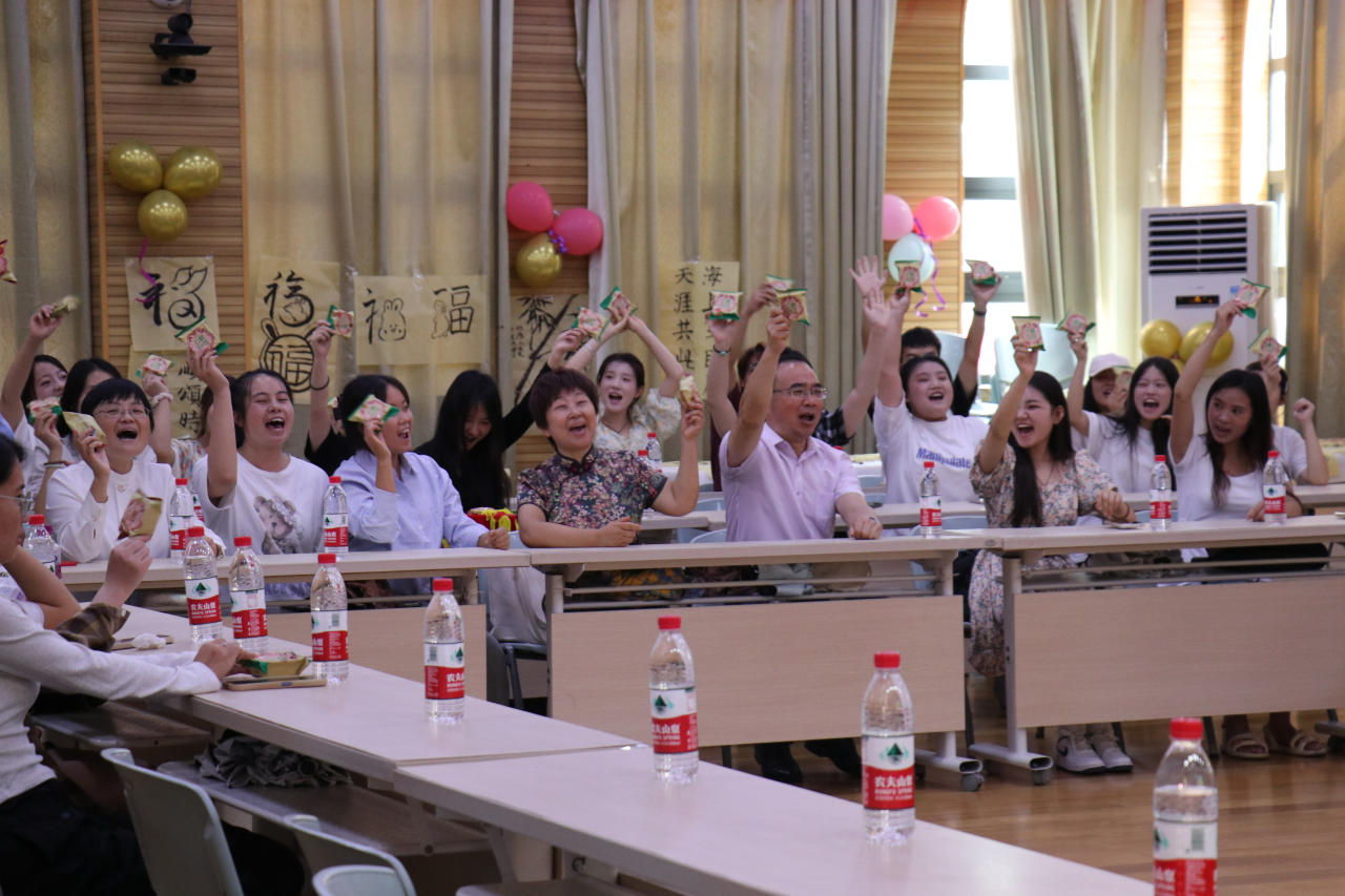 在游戏互动环节,成语接龙、抢凳子、猜灯谜等传统游戏让现场气氛热烈而欢乐,老师和学生们积极参与,各展才华,共同体验传统韵味。