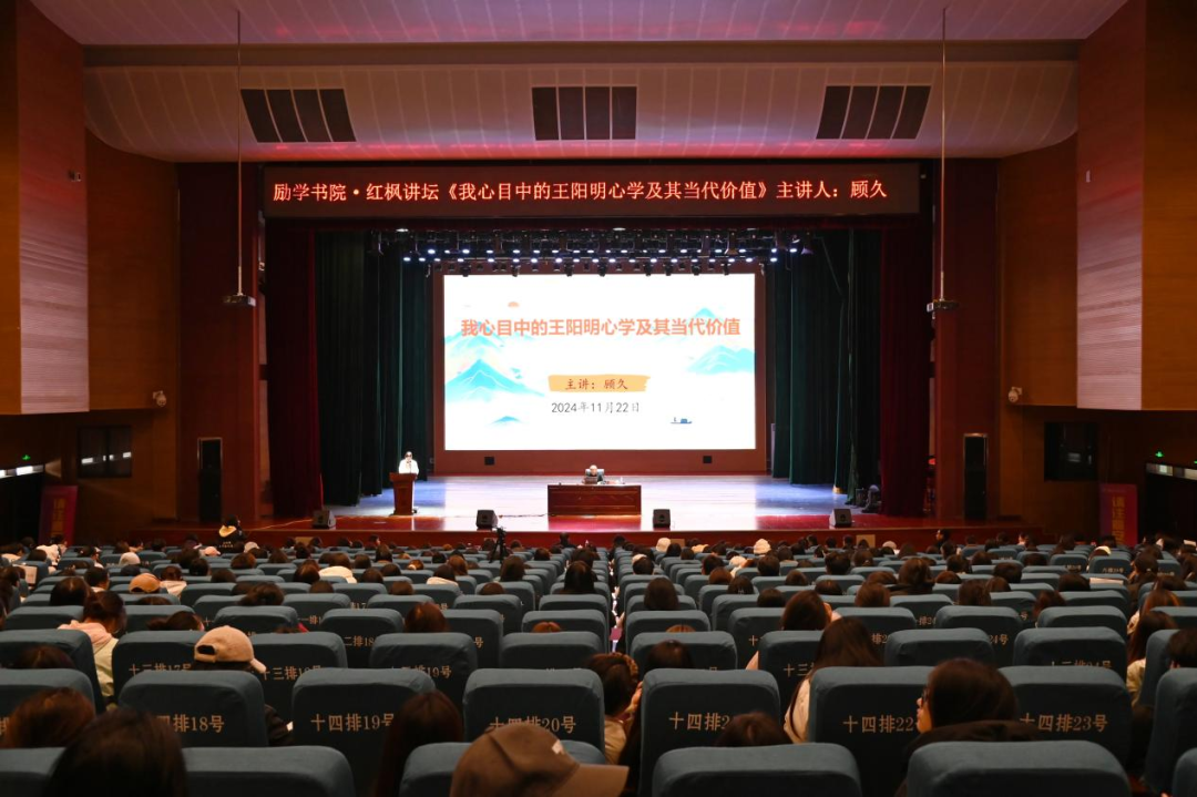 为深入挖掘阳明文化的当代价值,传承发展中华优秀传统文化,立足贵州丰富的阳明文化资源,将其融入育人体系。11月22日,著名文化学者、原贵州省人大常委会副主任、省文联主席、省文史研究馆馆长、现任《贵州文库》总纂顾久教授受邀在音乐厅为师生作《我心目中的王阳明心学及其当代价值》讲座。校党委书记李华荣、校党委副书记廖光力以及师生代表近800人聆听讲座。