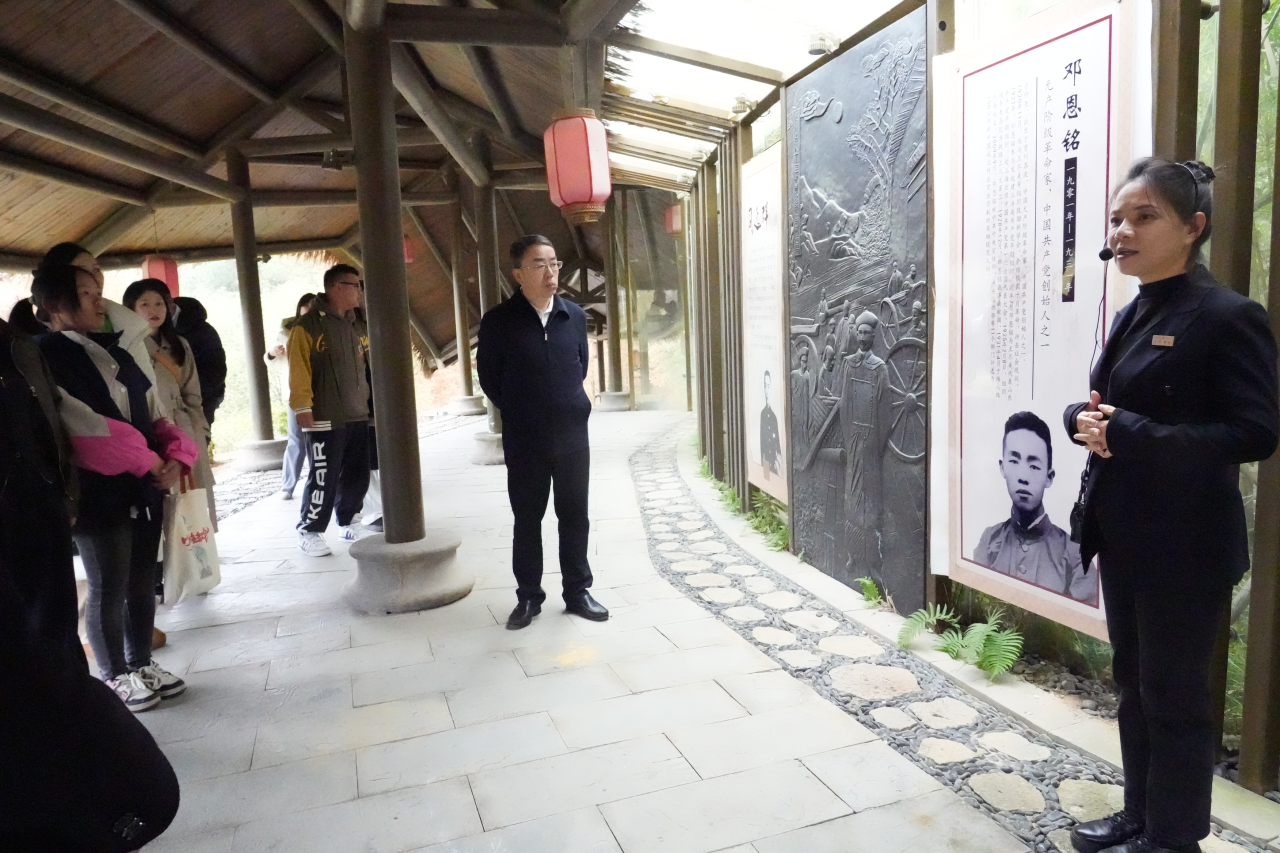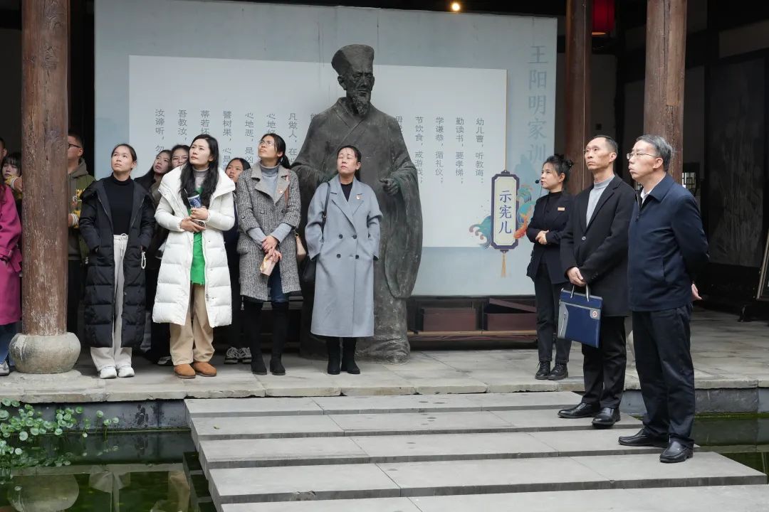 在解说人员的带领下,参加活动的党员、干部和师生来到耕读传家文化体验区,体验农耕文化、感悟诗书礼仪,深刻领悟中国传统优良家风“耕读传家”的核心思想;穿过家国情怀长廊,观看雕塑、布画、铜板诗刻,深入了解王阳明、邓恩铭、王伯群、杨顺清等人“报国爱民、清廉传家”的家教家风,从而知善为善、崇圣向贤;步入阳明小院家风家训馆,一幅幅“身边好家风”家庭合影映入眼帘,以身边事感化身边人,带动广大家庭建设好家庭、涵养好家教、培育好家风;走进家教家风讲堂,大家在毛泽东、刘少奇、周恩来等老一辈无产阶级革命家“家教家风展”前长久驻足,认真品味老一辈革命家充满温情的家教家风故事,学习他们爱党爱国、坚定信仰、忠贞不渝、严守纪律、清正廉洁、律己律家为内核的红色家风。