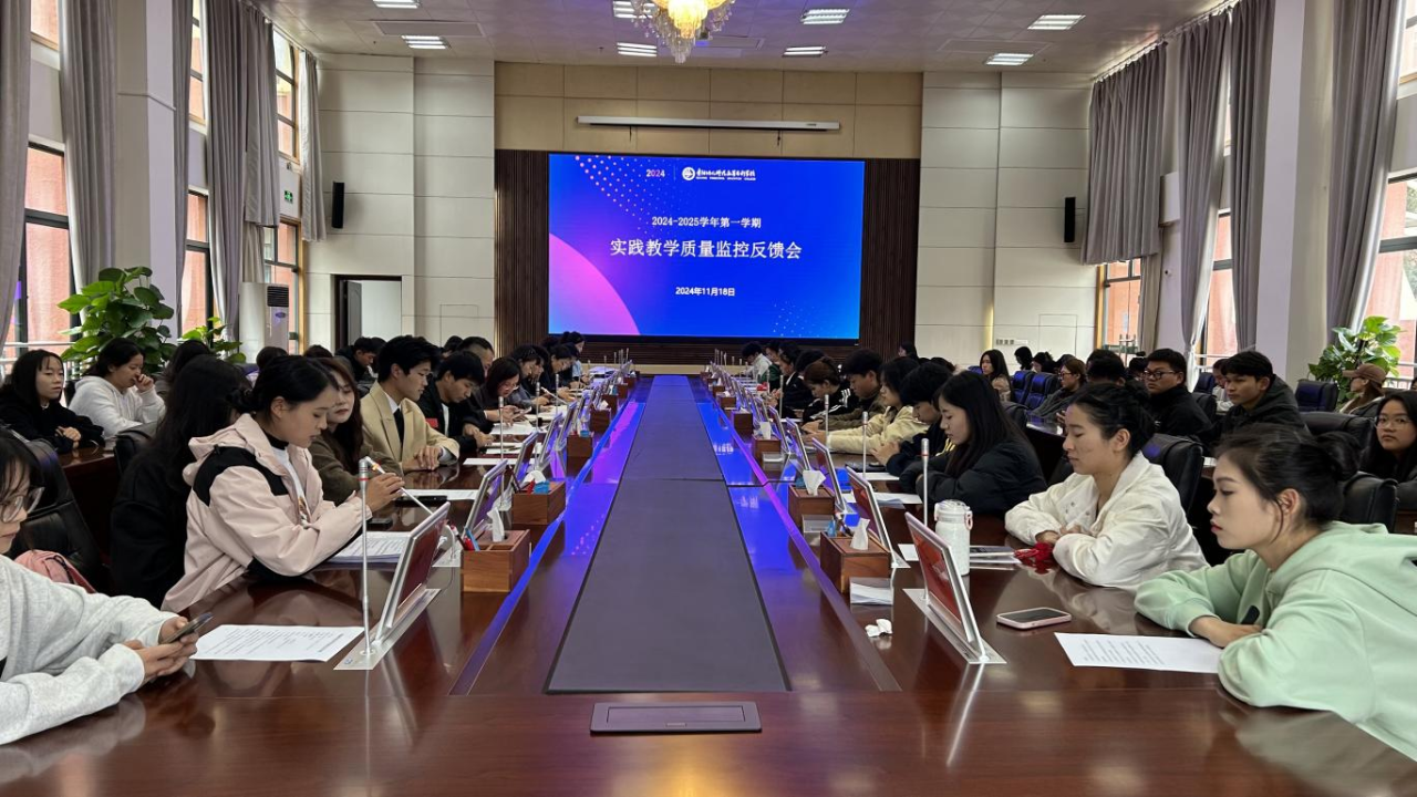 11月18日,学校线下实践教学质量监控反馈会议在峻德楼一楼会议室举行。会议由教务处负责人主持,质量监控评价中心负责人、相关工作人员以及来自2023级和2024级的实习生代表共同参与了此次会议。会上,学校相关部门认真倾听了实习生代表关于本学期实习实训工作的全面汇报与改进建议,并即时进行了反馈与深入讨论,形成了具体的意见清单。