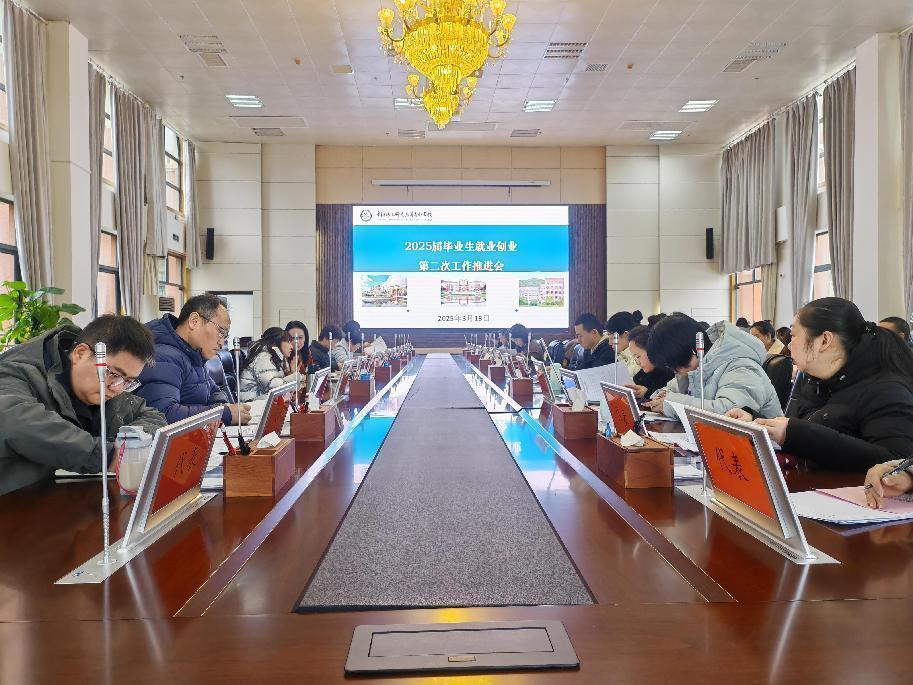 潘丽芬从思想认识、方法措施、长远规划三方面提出工作要求。在思想认识上,要增强责任感、使命感和紧迫感;在方法措施上,要精准发力,加大访企拓岗力度;在长远规划上,做好学校供给侧改革,打造专业品牌。会上,招生与就业处传达了《省教育厅办公室转发教育部办公厅关于开展 2025 届高校毕业生“春季促就业攻坚行动”的通知》并部署下一阶段就业工作。