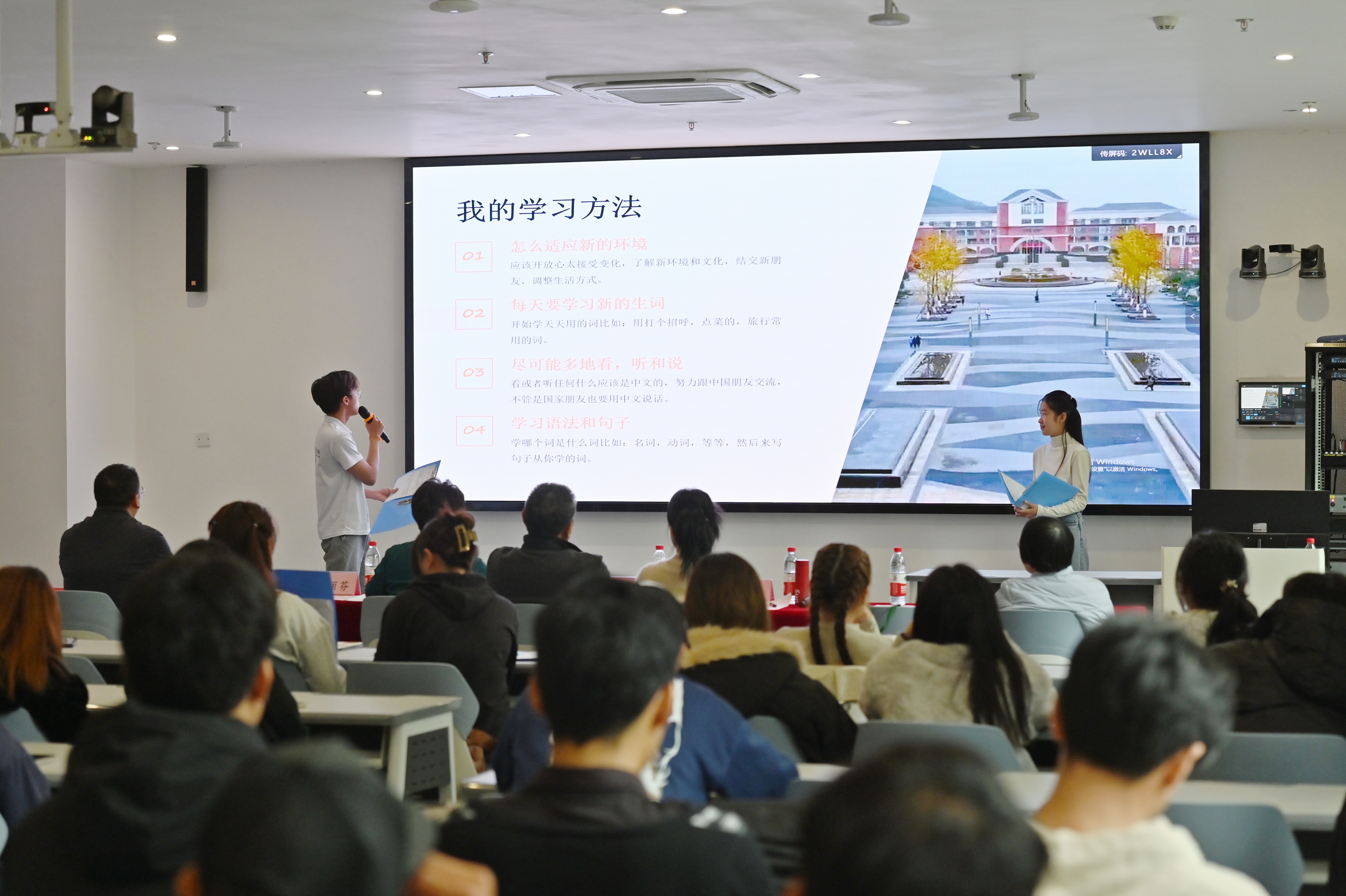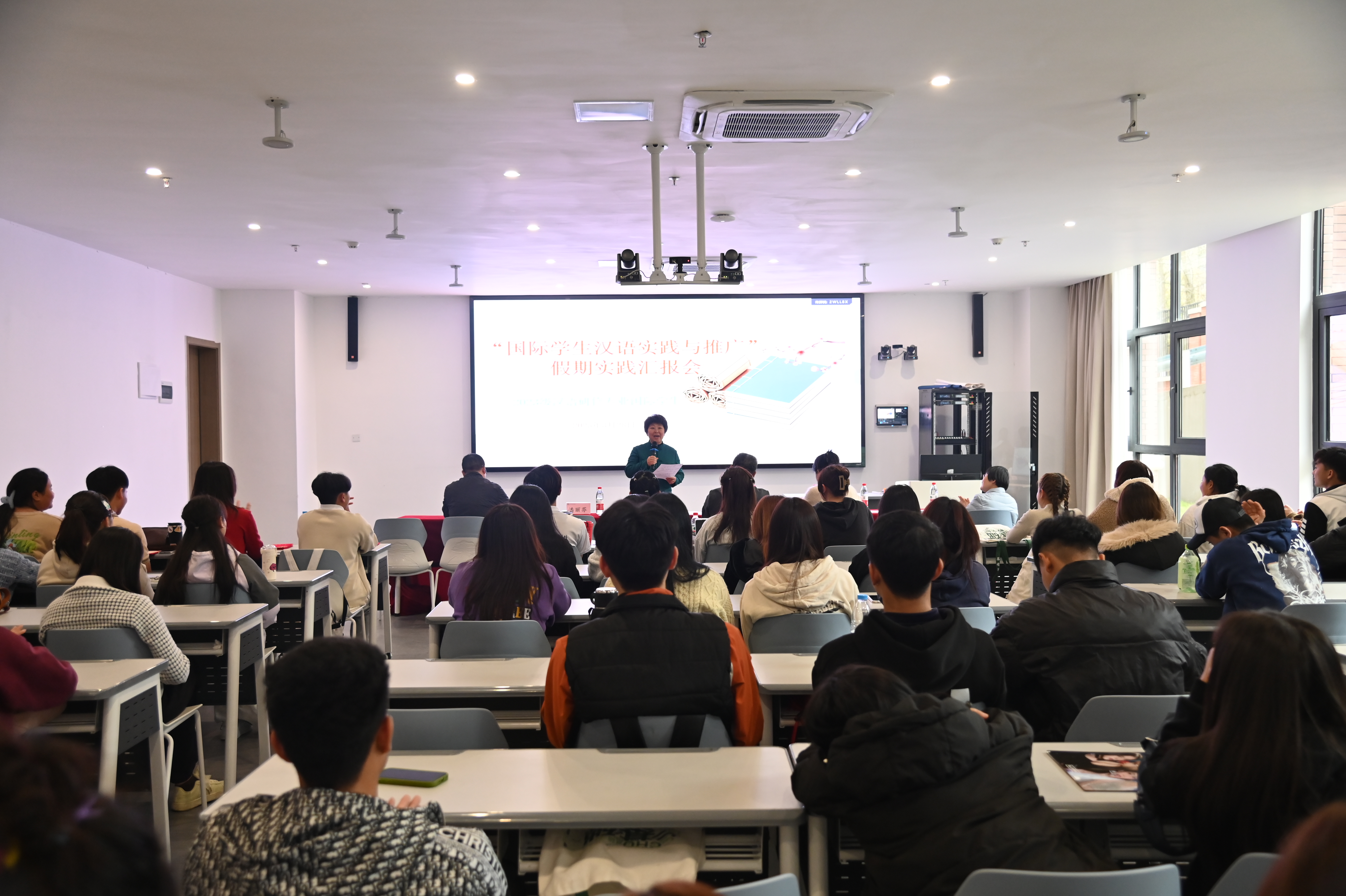 3月28日,学校“国际学生汉语实践与推广”假期实践汇报会在综合楼111教室举行。校长翟理红,党委委员、副校长潘丽芬及相关部门负责人与2023级汉语研修班国际学生齐聚一堂,共同回顾寒假实践成果,展望文化传播新未来。