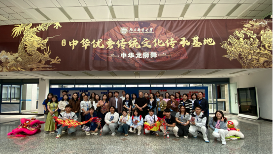 在南京金陵高等职业技术学校双桥门校区,交流团走进航空服务专业实训基地,并在 “享味轩” 参与多国美食制作沉浸式体验活动。活动特别邀请毛里求斯、尼泊尔等国留学生共同参与,中外师生在专业实训与文化互动中增进理解。南京邮电大学的校史馆、通信展览馆与创新创业成果展,则呈现了信息通信领域的学科成就与科创实力。交流团观摩智慧物流机器人、物联网环保项目等学生科创成果,与南邮师生就创新创业教育、产教融合人才培养展开热烈交流。南邮龙狮团的舞狮表演与彩带龙制作体验,更让中外师生沉浸式感受中国非遗技艺的魅力,在传统文化传承中深化职业教育的文化育人内涵。