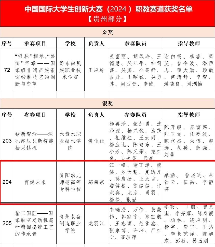 近日,教育部印发通知,公布中国国际大学生创新大赛(2024)获奖名单。Beat365参赛项目《育健未来》凭借其前瞻性理念与实践创新脱颖而出,荣获职教赛道全国银奖。这一荣誉不仅彰显了学校在体教融合领域的卓越探索,也为贵州职业教育创新发展再添亮眼成绩。