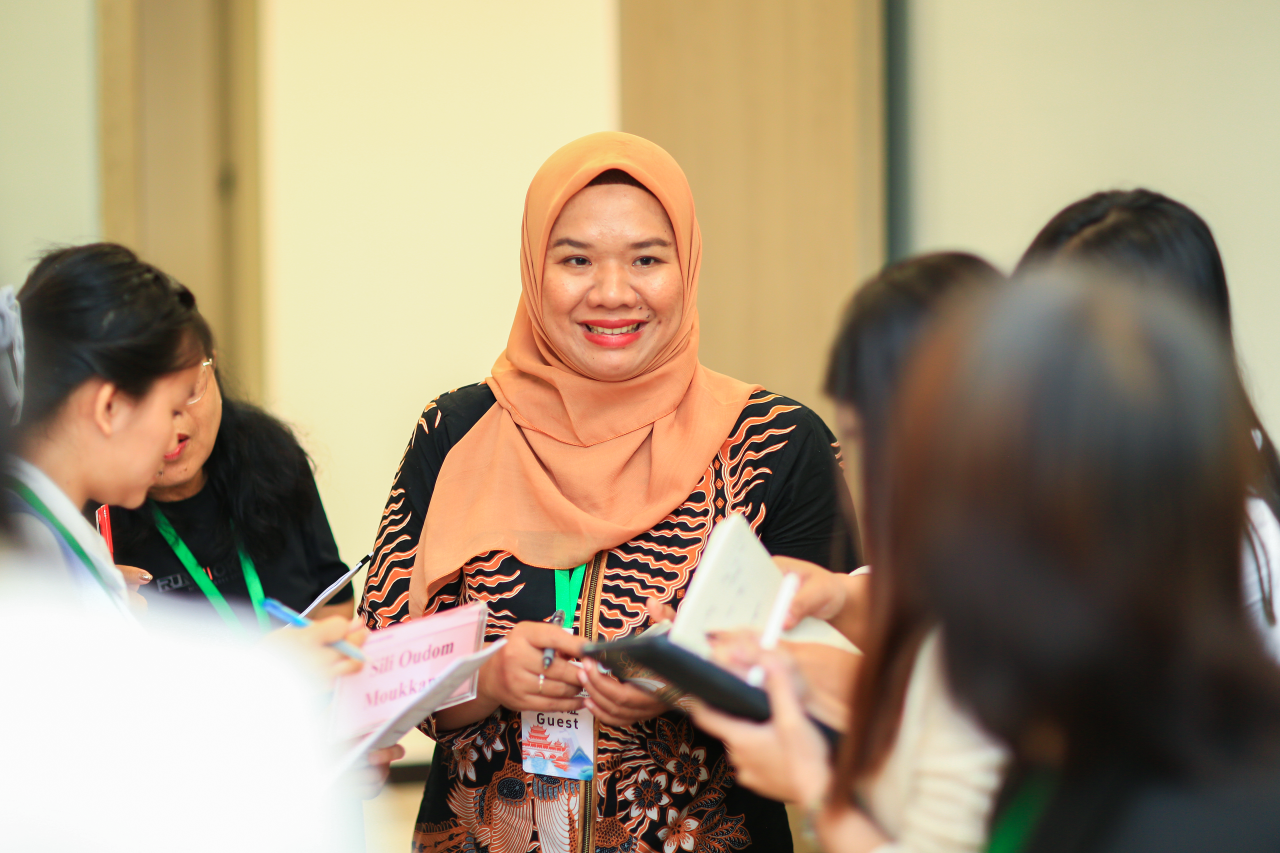 在实践环节,中外教师围绕“糯香共舞·贵州-东盟米食文化季”为主题开展墙饰创作,以贵州糯米饭与东盟饮食元素为灵感,将饮食文化转化为艺术符号,为幼儿教师提供文化创意教学的实操范例。印度尼西亚教育大学学生福明珠(BIMBI LASTRI PRIMA ASIH)感慨:“主题墙不仅是装饰,更是文化对话的载体,如何通过环境设计传递文化认同,深化跨文化教育思考,形成可迁移的环境创设方法论,这为自己后续幼儿文化教育活动提供了灵感。”