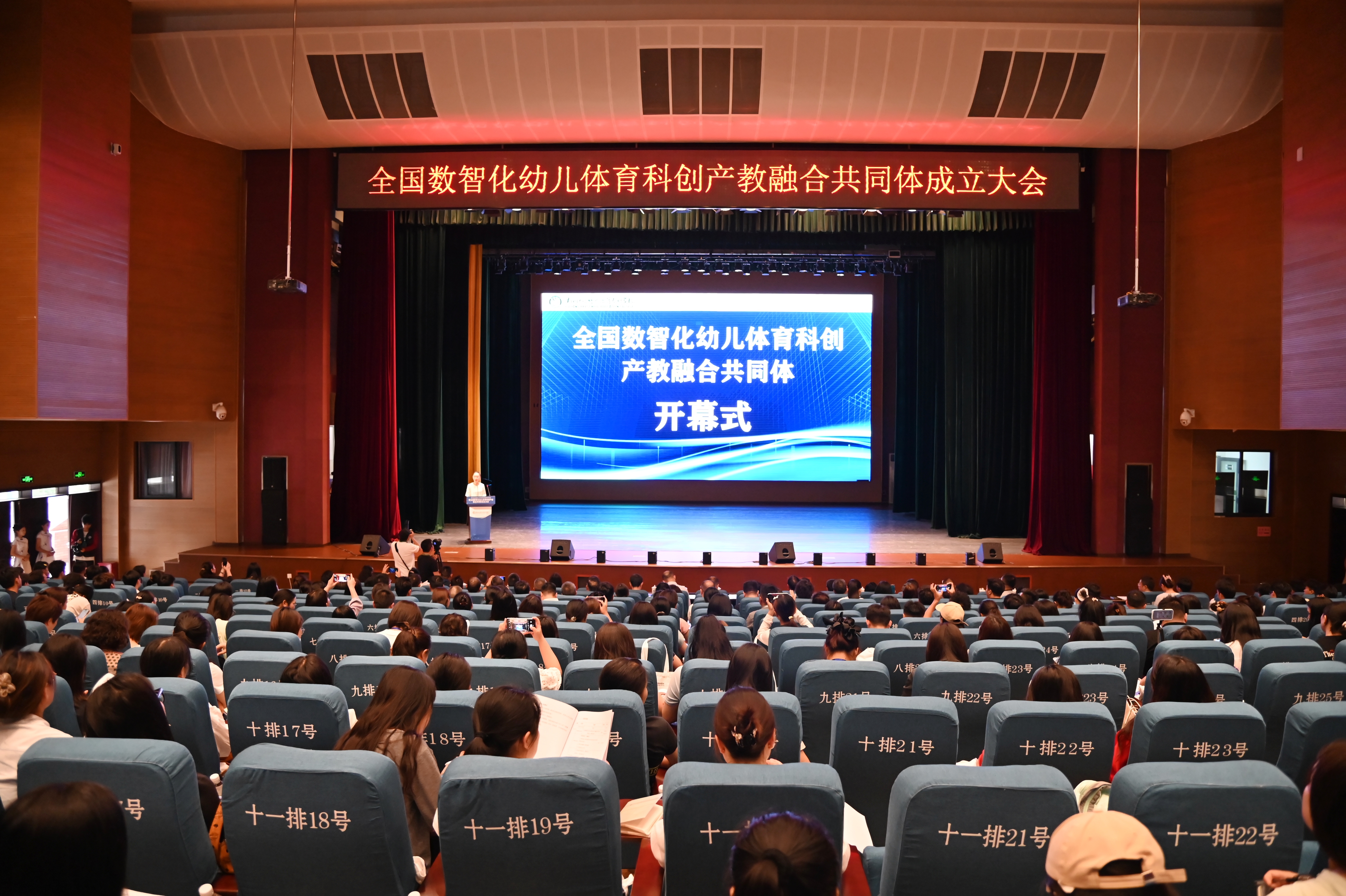 武汉亿童文教股份有限公司董事兼总经理陈兆宇现场宣读了共同体会员及理事单位名单,涵盖全国多所幼儿师范院校和行业龙头企业。共同体将通过政行企校协同创新机制,推动幼儿体育领域的产学研一体化发展,为学前教育培养复合型技术技能人才。