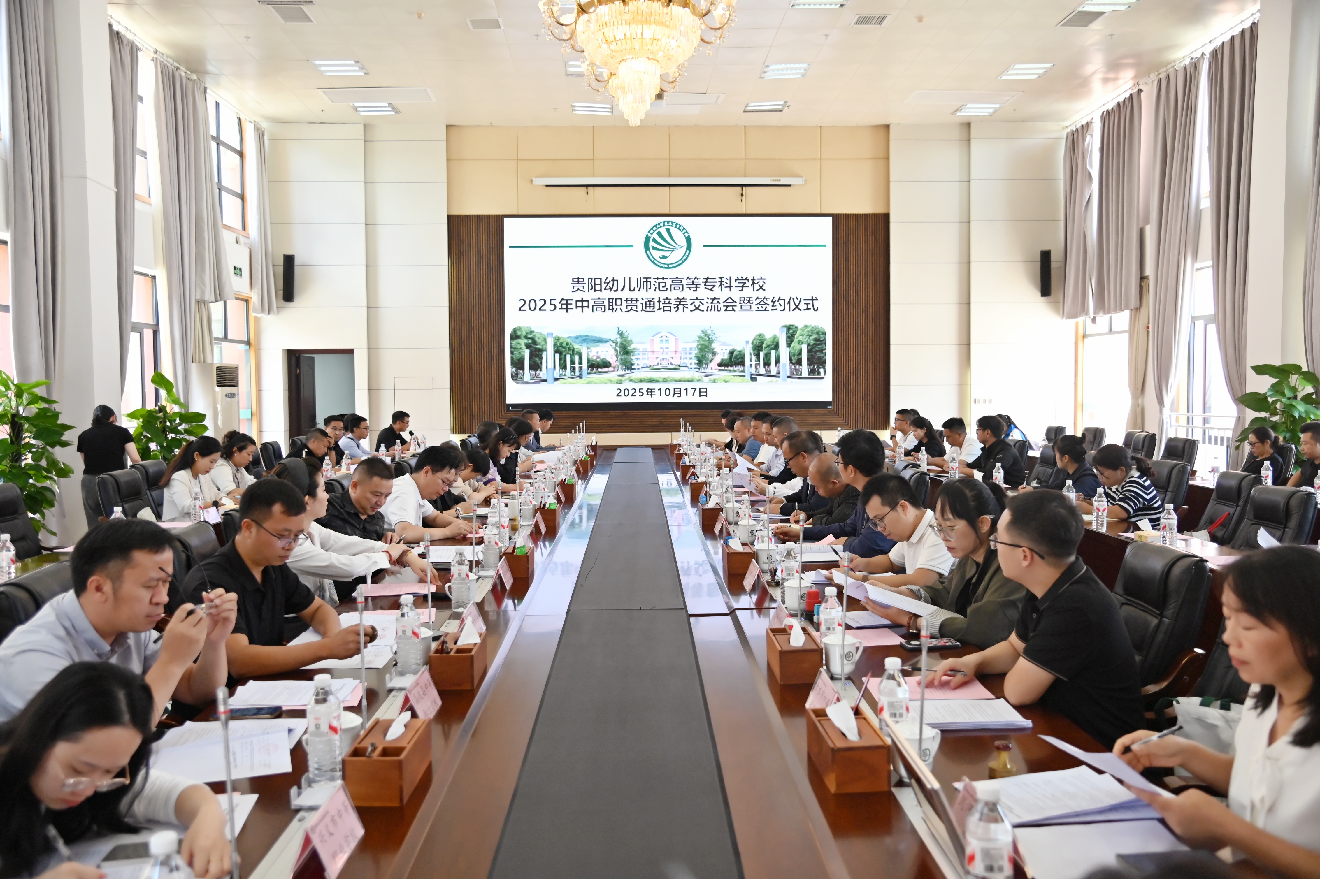10月17日,Beat3652025年中高职贯通联合培养工作交流暨协议签订会议在时光校区峻德楼一楼会议室顺利举行。校党委委员、副校长潘丽芬,党委委员、副校长孙立枫出席,贵阳市女子职业学校、贵阳市经济贸易中等专业学校、凤冈县中等职业学校等32所合作中职学校校领导及相关部门负责人,Beat365各相关部门负责人参加。会议由孙立枫主持。