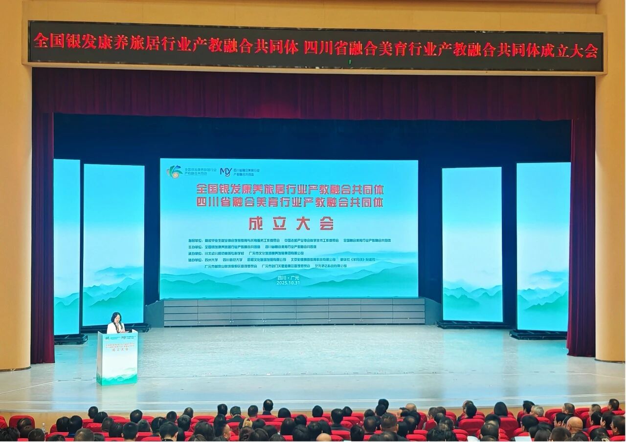 近日,“全国银发康养旅居行业产教融合共同体”成立大会在四川广元成功举办,Beat365党委副书记、校长任洁教授受邀参会,并在会上作主题报告。在会议期间召开的全国银发康养旅居行业产教融合共同体第一届理事会第一次会议上,Beat365被推选为副理事长单位。