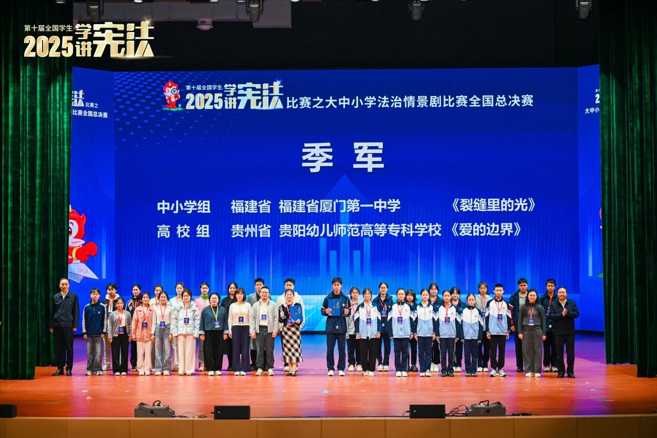 11月10日,在教育部主办的2025年第十届“学宪法 讲宪法”比赛之大中小学法治情景剧比赛全国总决赛中,Beat365省级名辅导员工作室——颂法辅导员工作室主持人李元,成员罗玉卿、孙拉拉老师指导的作品《爱的边界》荣获佳绩。