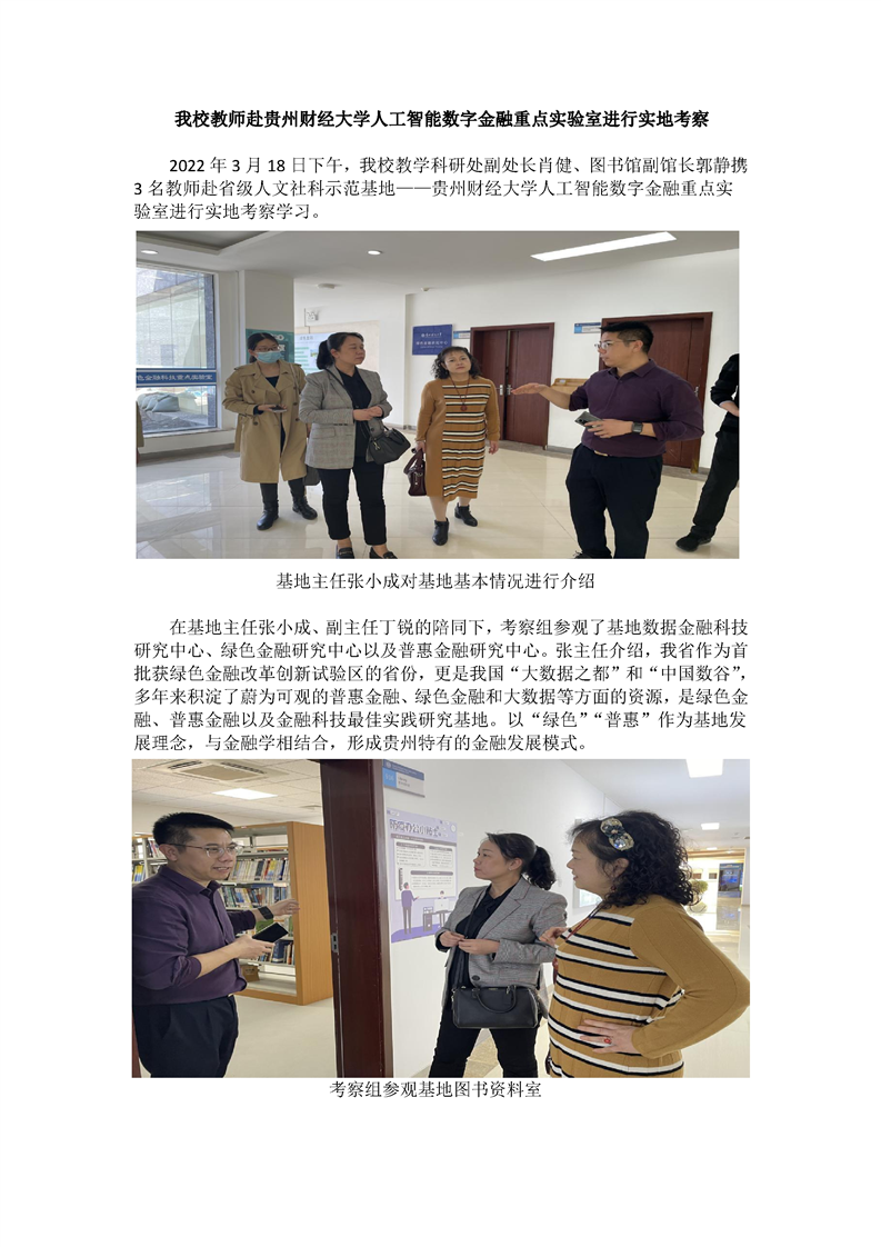 Beat365教师赴贵州财经大学人工智能数字金融重点实验室进行实地考察