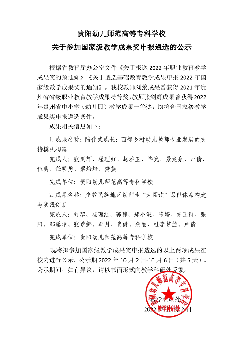 关于参加国家级教学成果奖申报遴选的公示