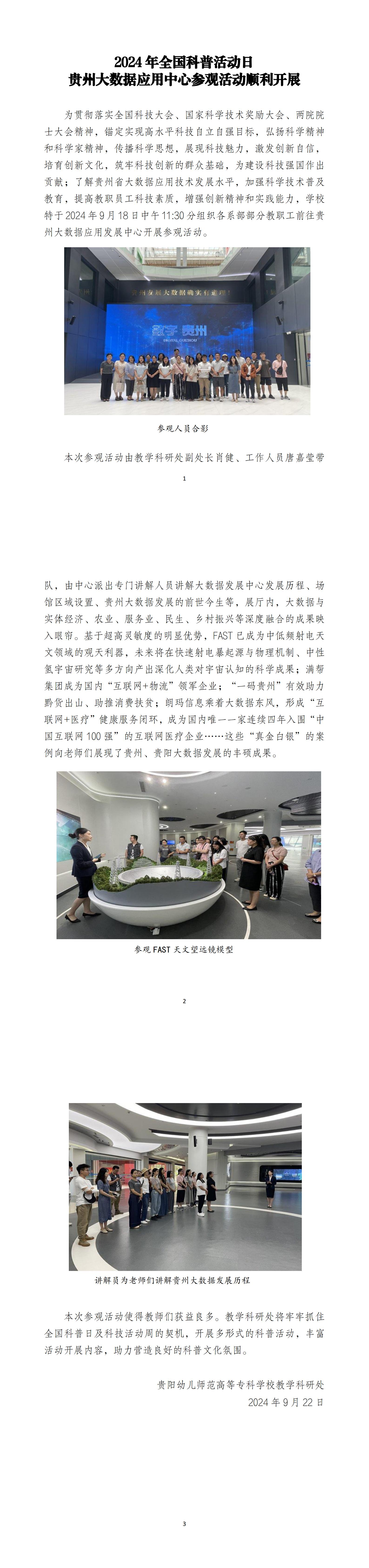 2024年全国科普活动日贵州大数据应用中心参观活动顺利开展